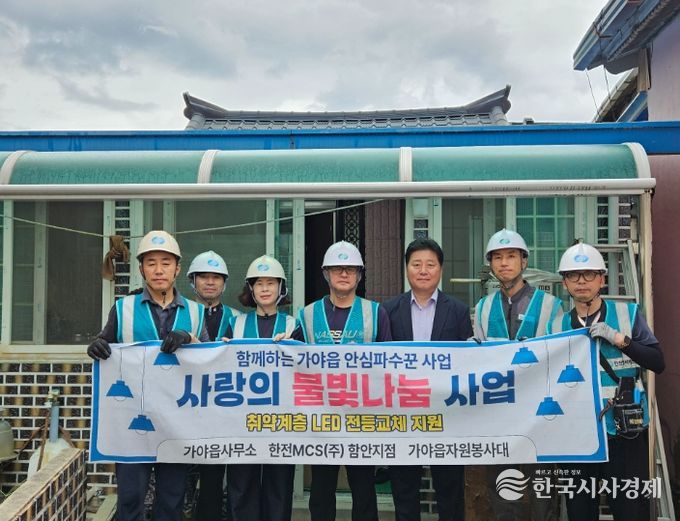 ‘사랑의 불빛나눔’은 한전엠씨에스(주) 함안지점과 가야읍 지역사회보장협의체가 함께 추진하는 가야읍 특화사업으로, 이번 4차 작업에는 한전엠씨에스(주) 의령지점도 동참해 힘을 보탰다.
