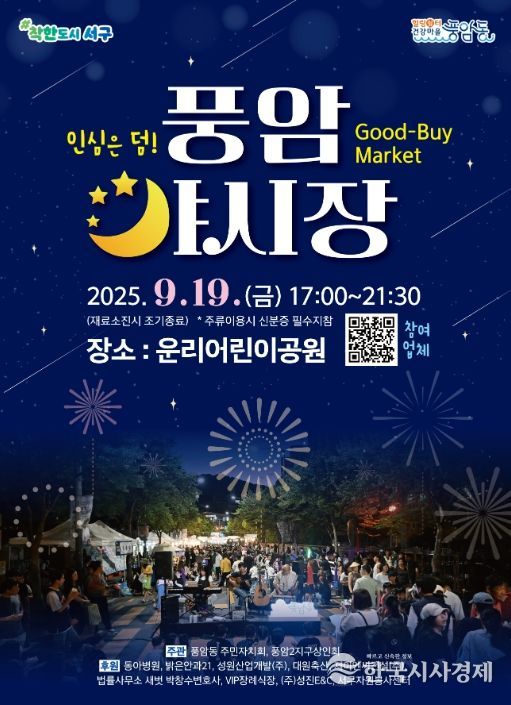 한국시사경제 광주취재본부 | 광주광역시 서구가 풍암동 가을밤을 환하게 밝힌다. 서구는 19일 오후 5시부터 10시까지 운리어린이공원에서 ‘풍암 야시장 굿바이 마켓(Good-Buy Market)’을 개최한다.