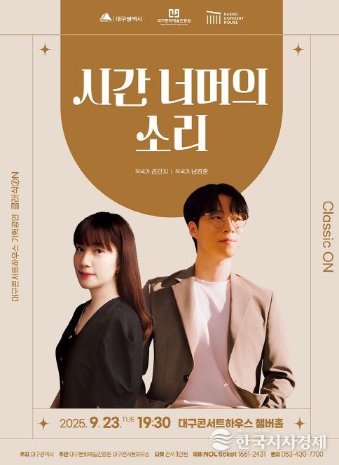 한국시사경제 대구취재본부 | 지역 청년 작곡가들의 창작품으로 선보이는 대구콘서트하우스 클래식 ON ‘시간 너머의 소리’ 공연이 9월 23일 오후 7시 30분 대구콘서트하우스 챔버홀에서 진행된다.