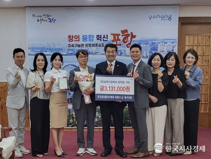 한국시사경제 문화팀 | 한국공인중개사협회 경상북도지부 포항시 남·북구지회는 18일 포항시 장학회에 장학금 3,131,000원을 기탁하며 지역 인재 육성에 힘을 보탰다.