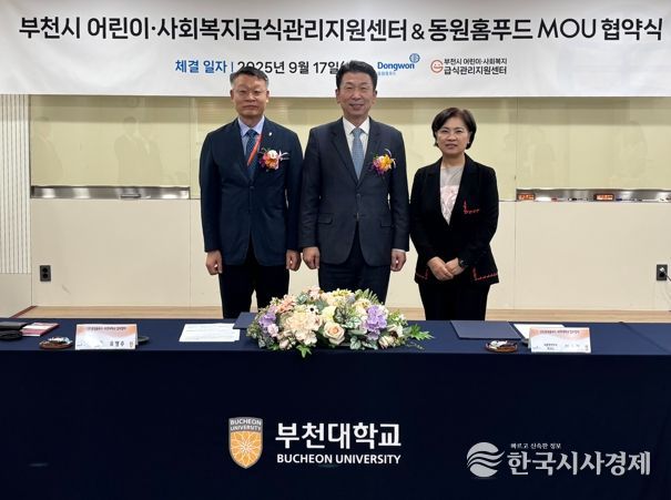 한국시사경제 경기취재본부 | 부천시어린이·사회복지급식관리지원센터는 어린이·사회복지 급식 환경 개선을 위해 ㈜동원홈푸드와 지난 17일 업무협약을 체결했다.
