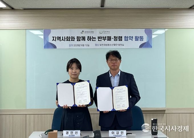 한국시사경제 경기취재본부 | 부천여성청소년재단 이강인 대표이사는 경기두레생협 경인선 이사장, ㈜눙눙이 조창원, 이윤주 공동대표와 반부패·청렴 협약을 맺었다. 재단은 다양한 공동활동 실천으로 반부패·청렴 문화를 확산하기 위해 마련됐다.