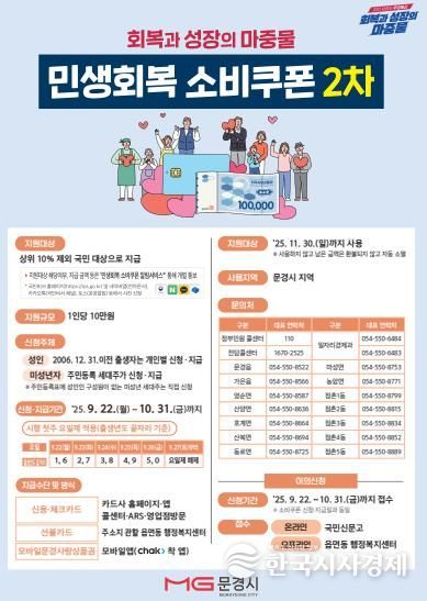 한국시사경제 경북취재본부 | 문경시는 오는 22일부터 지역 내 소비 진작과 지역경제 활성화를 위해 2차 민생회복 소비쿠폰을 접수·지급한다.
