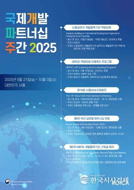 한국시사경제 해외팀 | 외교부는 9월 21일~10월 3일 간 서울에서 한국국제협력단(KOICA)과 공동으로 '2025 국제개발 파트너십 주간'을 개최한다.