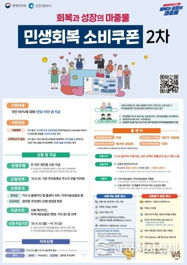 신청 첫 주(9월 22~26일) 민원 혼잡을 줄이기 위해 출생 연도 끝자리별 요일제가 적용되며, 인천시 지역 내 연 매출 30억 원 이하 소상공인 매장 및 지역사랑상품권 가맹점에서 11월 30일까지 사용할 수 있다.
