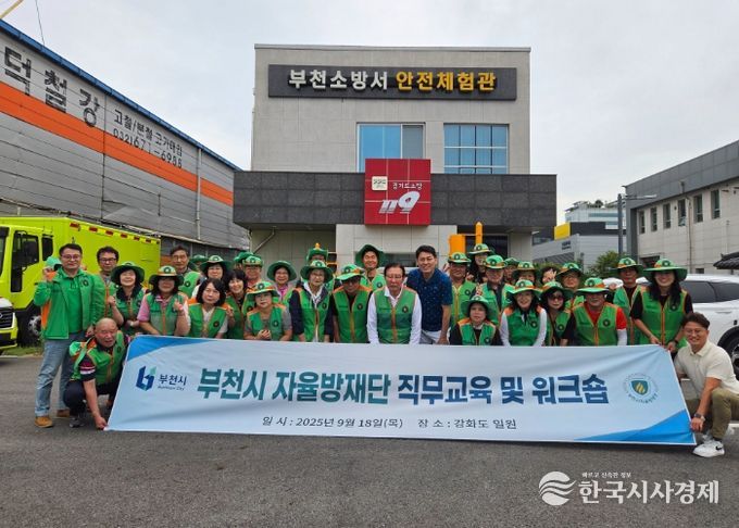 한국시사경제 경기취재본부 | 부천시는 지난 18일 부천시 자율방재단(단장 김태웅)과 오정119안전센터가 강화도 일원에서 ‘2025년 하반기 직무교육 및 워크숍’을 실시했다고 19일 밝혔다. 이번 교육은 자율방재단 동대표들의 재난 대응 역량과 조직 결속력 강화를 목적으로 진행됐다.