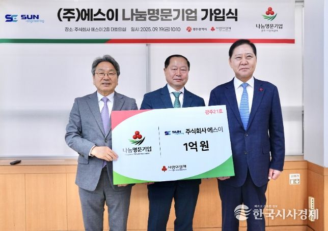 한국시사경제 광주취재본부 | 광주광역시는 지역기업인 ㈜에스이가 ‘나눔명문기업’에 동참, 19일 회사 대회의실에서 가입식을 개최했다고 밝혔다.
