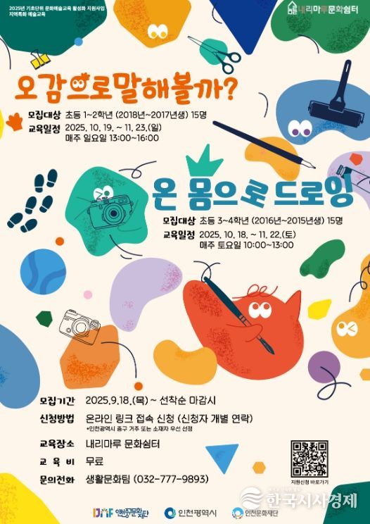 한국시사경제 윤광희 기자 | (재)인천중구문화재단은 오는 10월부터 11월까지 ‘온 몸으로 드로잉’ 등 예술 놀이 중심의 ‘지역 특화 문화예술 교육 프로그램’을 운영한다고 19일 밝혔다.