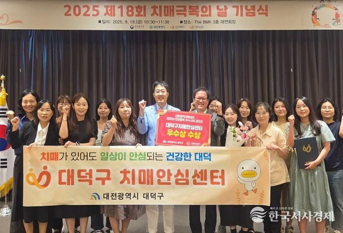 한국시사경제 대전취재본부 | 대전 대덕구는 19일 대전광역치매센터가 주관한 ‘2025년 치매극복의 날’ 기념행사에서 민관협력 우수사례 부문 우수상을 수상했다고 밝혔다.