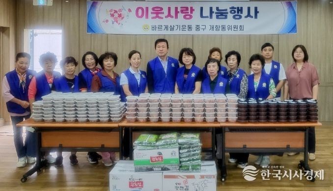 한국시사경제 윤광희 기자 | 바르게살기운동 중구 개항동 위원회(위원장 이덕순)는 저소득 취약계층을 대상으로 ‘정성을 담은 이웃사랑 반찬 나눔 행사’를 실시했다고 19일 밝혔다.