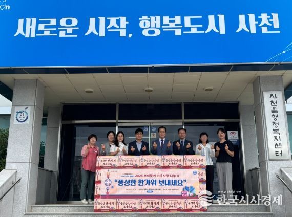 황현충 사천읍장은 “매년 이웃들에게 나눔의 손길을 전해주셔서 정말 감사하다”며 “정성껏 준비해주신 물품은 이웃들이 풍성한 한가위를 보낼 수 있도록 잘 전달하겠다”고 말했다.