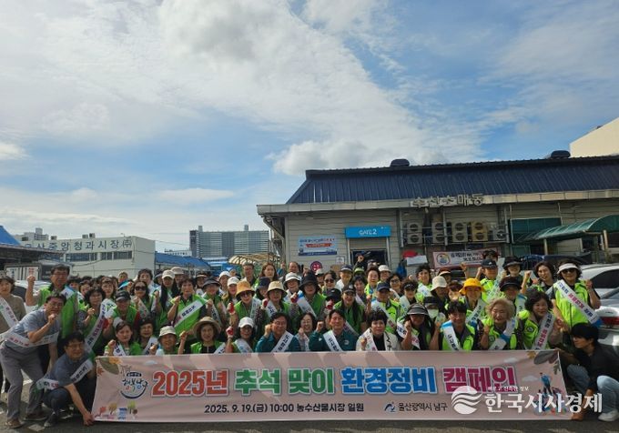 한국시사경제 울산취재본부 | 울산 남구는 19일 울산 농수산물도매시장 일원에서 자생단체(그린리더협의회·자연보호협의회) 회원과 공무원 등 100여 명이 참여한 가운데 ‘추석맞이 환경정비’를 실시했다.