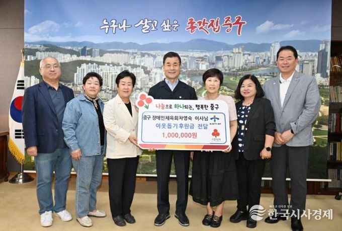 중구는 후원단체의 뜻에 따라 해당 후원금을 (사)울산광역시 지체장애인협회 중구지회에 전달할 예정이다.