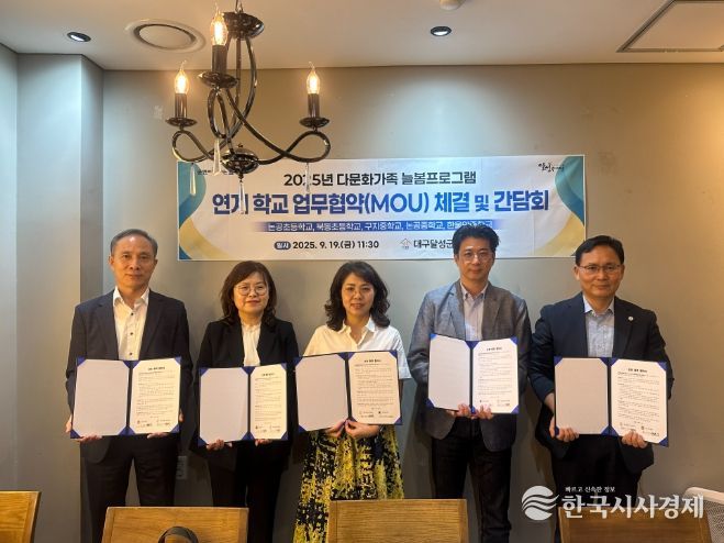 한국시사경제 문화팀 | 달성군가족센터는 지난 19일 달성군 교육특구사업 중 하나인 ‘다문화가족 늘봄프로그램’ 추진을 위해 관내 초등·중학교 4개교와 업무협약(MOU)를 체결했다.