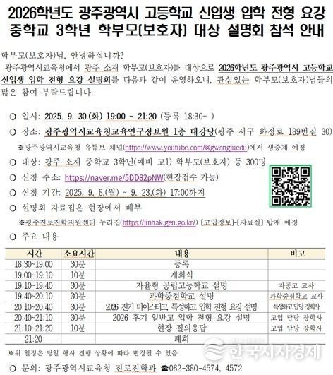 설명회 참여 신청은 오는 23일까지 온라인'으로 하면 된다. 현장 접수도 가능하며, 행사에 참석하지 못하는 학부모를 위해 시교육청 유튜브 채널을 통해 실시간 중계할 예정이다.