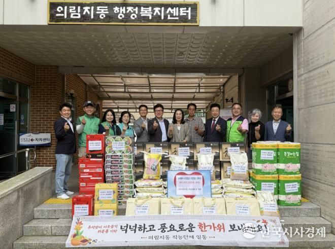 한국시사경제 충북취재본부 | 의림지동 각 직능단체와 기관은 지난 19일 추석 명절을 맞아 백미, 라면, 선물세트, 휴지 등 550만 원 상당의 후원물품을 의림지동행정복지센터에 기탁했다.