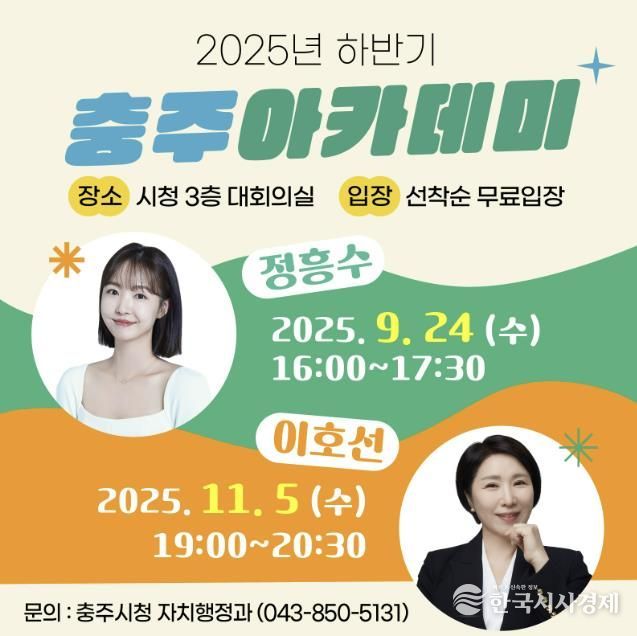 한편, 올해 마지막 충주아카데미로 11월 5일 오후 7시, 시청 3층 대회의실에서 이호선 교수 초청 특강을 마련한다.