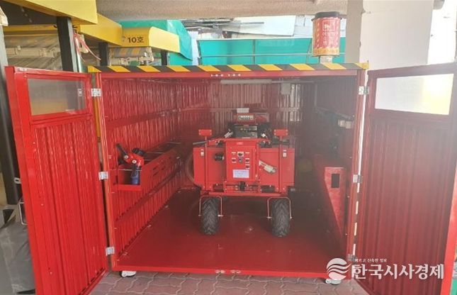 이동식 소방펌프는 지난 9월 5일 전통시장에 배치된 장비로, 도로가 협소해 소방차량 진입이 어려운 전통시장과 상가 밀집지역에서 화재 발생 시 신속한 초기 진압에 활용된다.