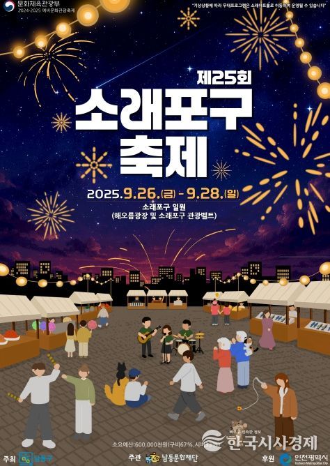 한국시사경제 윤광희 기자 | 인천시 남동구와 남동문화재단은 오는 9월 26~28일까지 사흘간 열리는 ‘제25회 소래포구 축제’의 먹거리 정보를 사전에 투명하게 공개한다고 22일 밝혔다.