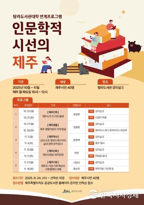 김봉석 탐라도서관장은 “이번 프로그램을 통해 제주의 다양한 문화자원을 재조명하고, 제주라는 공간에 담긴 새로운 매력을 발견하는 기회가 되길 바란다”고 말했다.