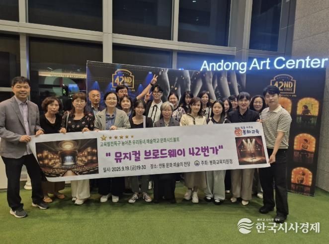 한국시사경제 문화팀 | 경상북도봉화교육지원청은 9월 19일, 2025 농어촌 우리동네 예술학교 운영 관리자 및 담당 교사들이 안동문화예술의전당에서 열린 뮤지컬 『브로드웨이 42번가』 공연을 관람했다고 밝혔다.