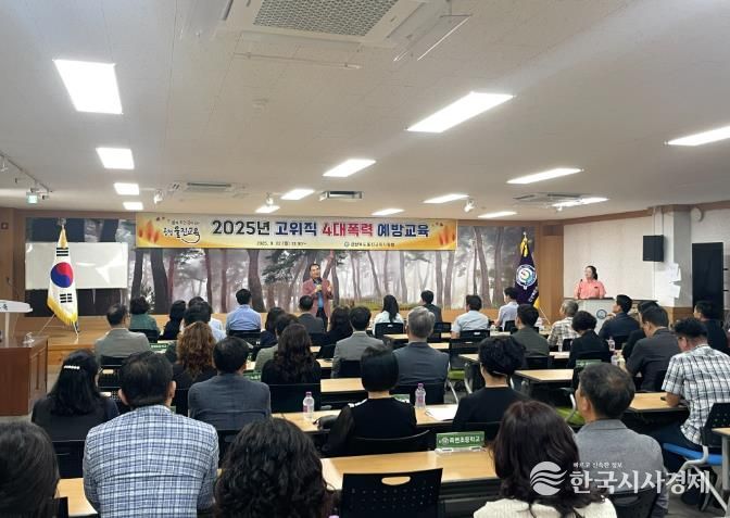 한국시사경제 문화팀 | 경상북도울진교육지원청은 2025년 9월 22일, 3층 대회의실에서 고위직 대상 4대폭력(성희롱, 성폭력, 성매매, 가정폭력) 예방교육을 시행했다.