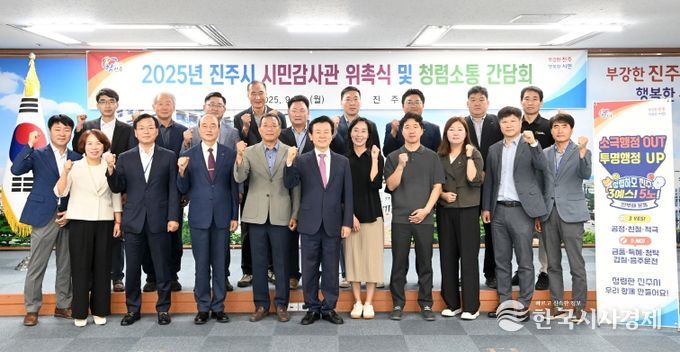 이날 행사에서는 명예감사관 10명과 전문감사관 12명으로 구성된 진주시 시민감사관 총 22명을 새로이 위촉했다. 이어 시민감사관을 대상으로 제도와 운영 전반을 안내하고, 진주시 청렴시책을 공유하는 간담회도 진행했다.