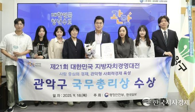한국시사경제 이정이 기자 | 관악구가 2025 지역경제 혁신박람회에서 개최된 ‘제21회 대한민국 지방자치 경영대전’ 시상식에서 최우수상인 국무총리상을 수상했다.