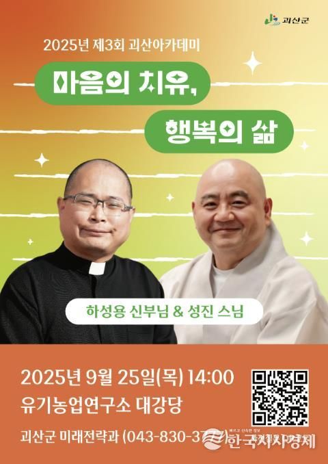 이번 아카데미는 ‘마음의 치유, 행복의 삶’이라는 주제로 진행되며, 하성용 신부와 성진 스님이 강연자로 나선다.
