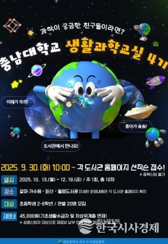 한국시사경제 대전취재본부 | 대전 서구 갈마·가수원·둔산·월평도서관은 지역 어린이들의 과학 창의력과 잠재력을 키우기 위해 2025년 ‘충남대학교 생활과학교실’ 4기를 운영한다고 23일 밝혔다.