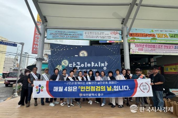 한국시사경제 대전취재본부 | 대전 중구는 제347차 안전점검의 날을 맞아 지역 내 안전사고 예방과 안전의식 제고를 위한‘안전점검의 날 캠페인’을 실시했다고 밝혔다.
