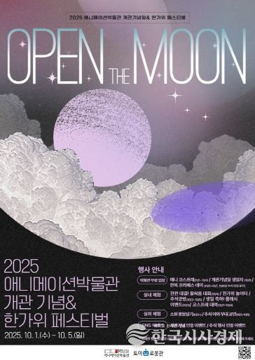 한국시사경제 이정이 기자 | 춘천 애니메이션박물관이 ‘문’을 열고 달을 맞이한다. 오는 10월 1일부터 5일까지 열리는 '오픈 더 문(Open the Moon)' 페스티벌은 개관기념일과 한가위를 함께 기념하며, 세대와 지역이 어우러지는 특별한 가을 축제로 마련됐다.