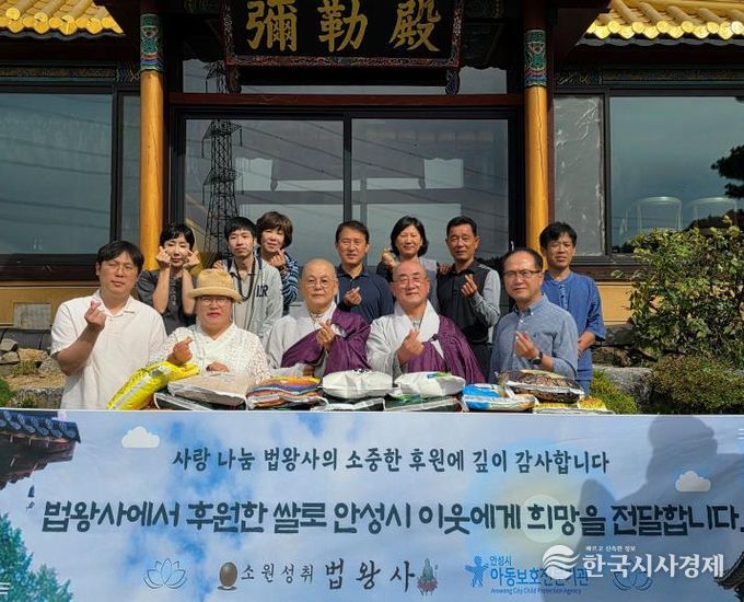 한국시사경제 경기취재본부 | 안성시 보개면에 위치한 법왕사는 2025년 9월 22일(월) 쌀 1,080kg(10kg 108포대)를 안성시아동보호전문기관에 기탁했다.