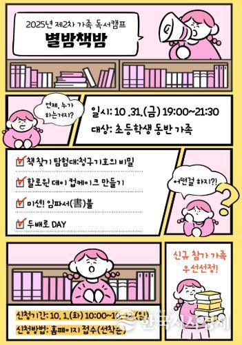 한국시사경제 이정이 기자 | 삼척교육문화관은 10월 31일 가족과 함께 도서관에서 특별하고 즐거운 추억을 만들 수 있는 ‘2025년 제2차 독서캠프 ‘별밤책밤’을 운영한다.
