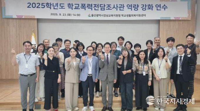 한국시사경제 울산취재본부 | 울산 강남교육지원청은 23일 대청마루에서 강남지역 학교폭력전담조사관을 대상으로 역량 강화 연수를 진행했다.