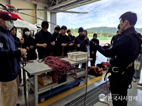학생들은 소방헬기에 탑승해 출동 절차를 직접 경험하고, 구조와 구급업무를 동시에 수행하는 항공대원의 역할을 이해하는 시간을 가졌다.