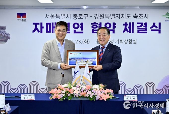 한국시사경제 이정이 기자 | 강원특별자치도 속초시와 서울특별시 종로구는 9월 23일, 종로구청 기획상황실에서 상생발전과 활발한 교류 협력을 위한 친선결연 협약을 체결했다.