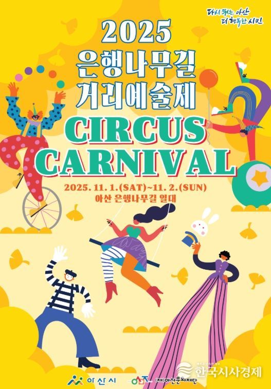 한국시사경제 충남취재본부 | (재)아산문화재단은 오는 11월 1일부터 2일까지 이틀간 아산 은행나무길 일대에서 '2025 은행나무길 거리예술제'를 개최한다고 밝혔다.