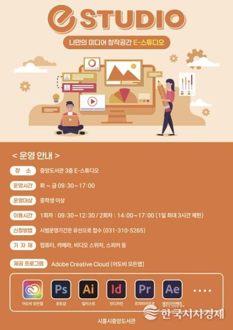 한국시사경제 경기취재본부 | 시흥시중앙도서관은 시민들의 미디어 창작활동을 적극 지원하기 위해 도서관 3층에 위치한 e-스튜디오에 어도비 크리에이티브 클라우드(Adobe Creative Cloud)를 도입해 오는 9월 25일부터 시범 운영을 시작한다.