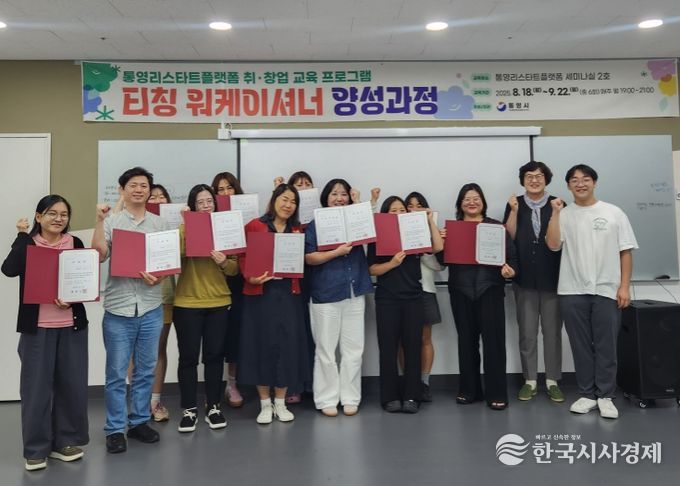 한국시사경제 경남취재본부 | 통영시는 지난 22일 통영리스타트플랫폼 취・창업 프로그램‘티칭 워케이셔너 양성과정’이성황리에 마무리됐다고 전했다.