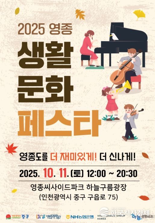 한국시사경제 윤광희 기자 | (재)인천중구문화재단은 오는 10월 11일 영종씨사이드파크 하늘구름광장(인천 중구 구읍로 75)에서 ‘2025 영종 생활문화 페스타’를 개최한다고 밝혔다.