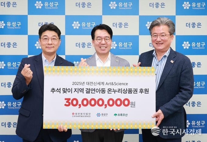 한국시사경제 대전취재본부 | 대전 유성구는 24일 대전신세계 Art&Science(대표이사 윤석희, 이하 대전신세계)가 온누리상품권 3,000만 원을 기탁했다고 밝혔다.