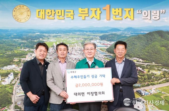 이번 성금은 대의면 내 17개 마을 이장들이 한마음으로 뜻을 모아 마련한 것으로, 폭우와 침수 피해로 어려움을 겪고 있는 이웃 이재민들의 조속한 일상 회복과 복구 지원에 보탬이 되고자 하는 따뜻한 연대의 마음이 담겨 있다.