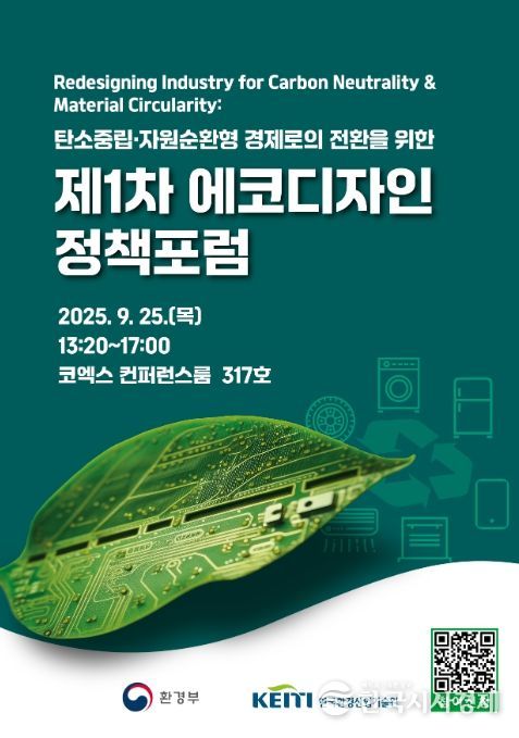 한국시사경제 이정이 기자 | 환경부와 한국환경산업기술원은 9월 25일 코엑스(서울 강남구 소재)에서 ‘제1차 에코디자인 정책포럼’을 개최한다.