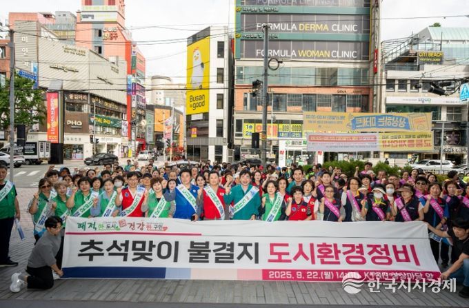 한국시사경제 부산취재본부 | 부산진구는 지난 22일 서면1번가 일원에서 공무원, 새마을회·바르게살기협의회·한국자유총연맹 유관단체와 주민 등 약 150명이 참여한 가운데 추석맞이 도시환경정비 행사를 가졌다고 밝혔다.