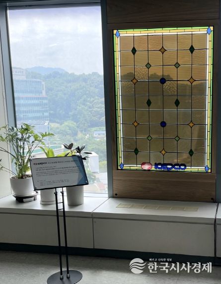 이번에 설치한 패널은 15×15cm2 크기의 페로브스카이트 모듈 54장을 병렬로 배열했으며, 모듈 효율은 11~13%, 투과율은 30% 이상으로 창을 통해 외부 전경을 볼 수 있는 등 기술 성능을 높였다. 또한 KEPCO 로고를 활용한 스테인드글라스 디자인을 패널 후면에 적용해 건축물 미관을 높이며 디자인 완성도를 확보했다.