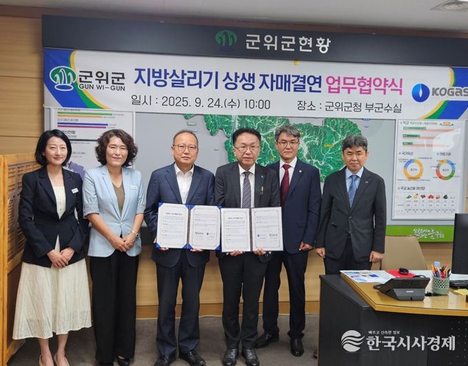 한국시사경제 이정이 기자 | 군위군과 한국가스공사(사장 최연혜)는 9월 24일 수요일 오전 10시 군위군청 부군수실에서 지방살리기 상생 자매결연 업무협약을 체결했다. 지방살리기 상생 자매결연 업무협약은 비수도권 인구감소지역의 경제 활성화와 인구 유입을 위해 중앙정부와 공공기관, 지자체가 협력하는 공식 협약이다.