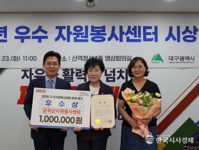 한국시사경제 이정이 기자 | 군위군은 지난 23일 (사)군위군자원봉사센터(센터장 김정애)가 '2025 대구광역시 구·군 자원봉사센터 평가'에서 ‘찾아가는 이웃사랑 자원봉사’ 사업으로 우수상을 수상하는 쾌거를 이뤘다고 밝혔다.