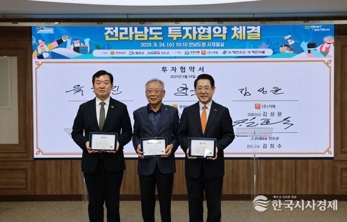 24일 전라남도청에서 전라남도와 영암군이, ㈜해진수산, ㈜해진식품과 투자협약을 체결하고 협력을 약속했다.