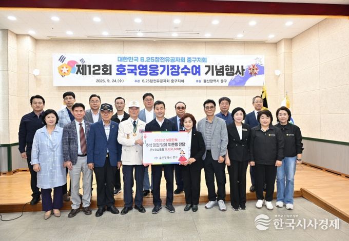 한국시사경제 문화팀 | 울산 중구가 9월 24일 낮 12시 중구보훈복지회관 대강당에서 지역 보훈단체 추석 명절 위문품 전달식을 열었다.